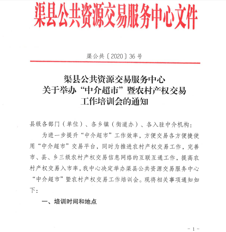 关于举办“中介超市”暨农村产权交易工作培训会的通知